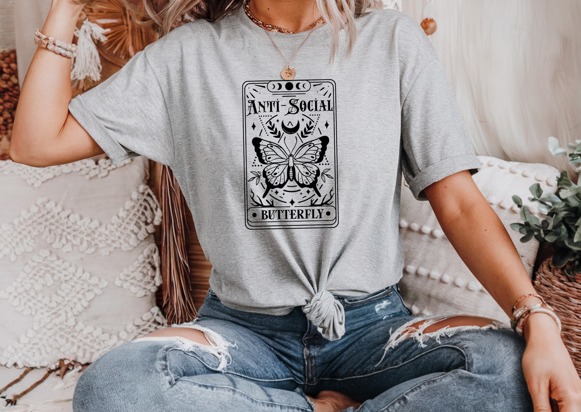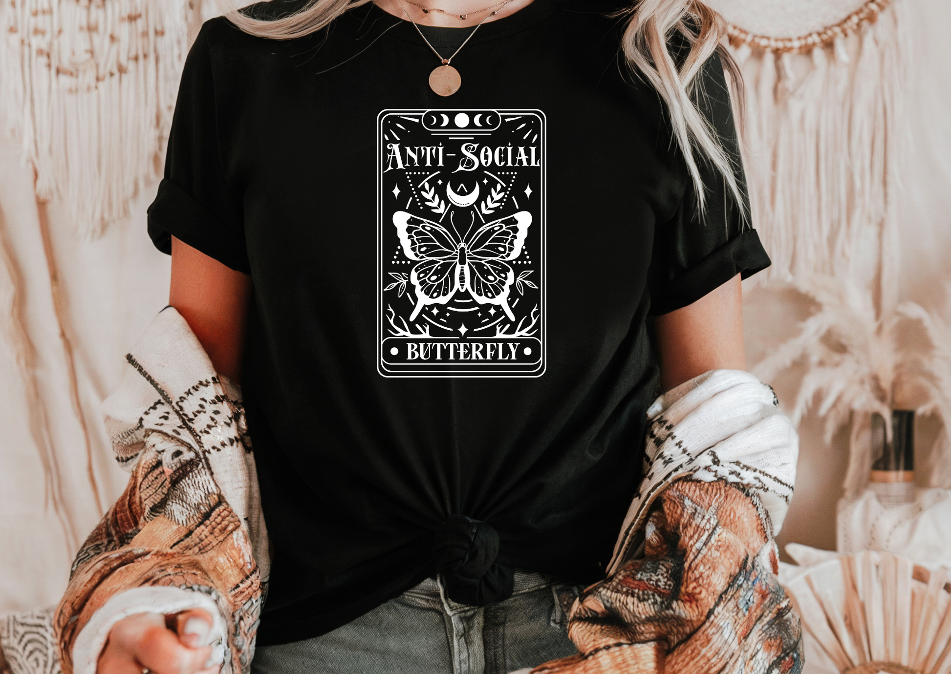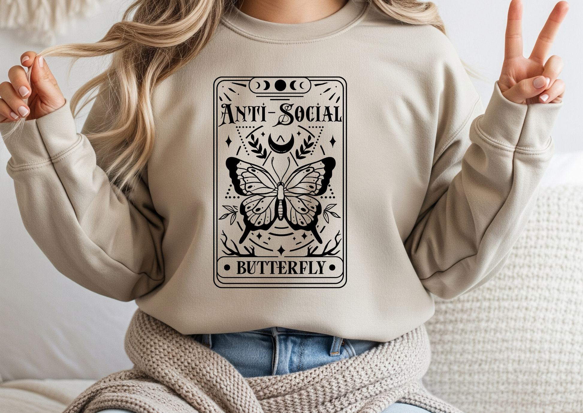 For those who thrive in their own lane, our Anti-Social Butterfly design says it all. Featuring a bold mystical butterfly graphic, this piece blends comfort with a touch of edge.