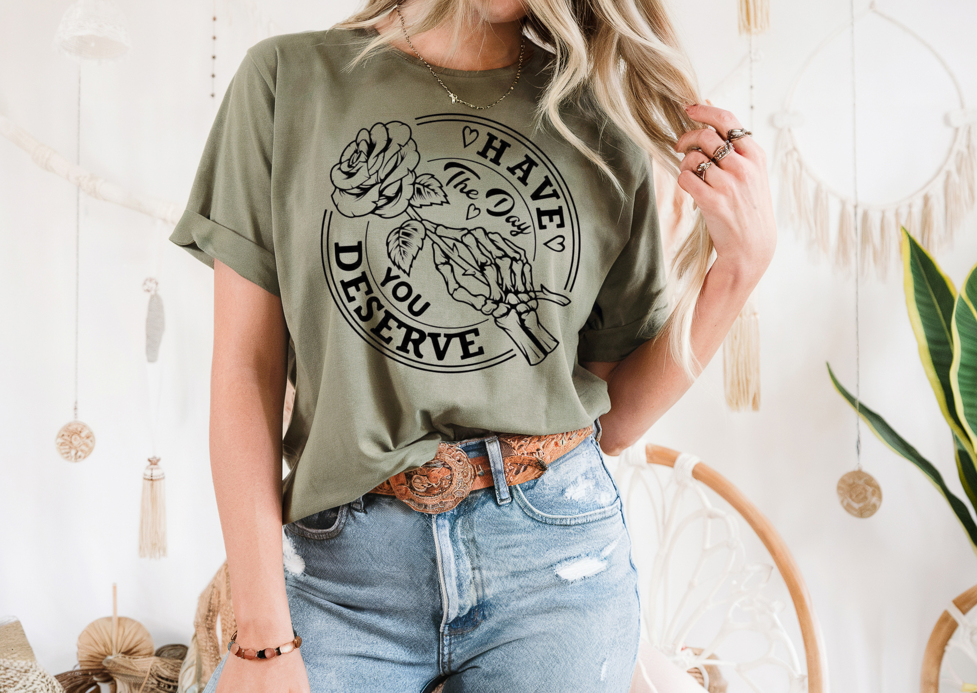 The Have the Day You Deserve design features a skeleton hand offering a rose, blending sarcasm and style in true Wicked Babes fashion. Whether you’re having a good day… or just pretending to, this is your new go-to statement piece.
