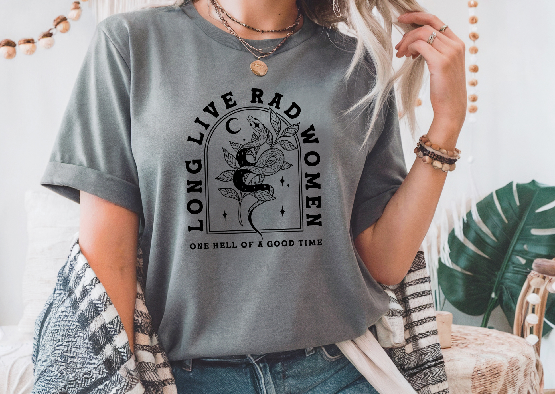 Made for the rad women who don’t follow the rules... they write their own. Available in a variety of colors and your choice of T-shirt or sweater, this piece is perfect for everyday wear, festivals, or nights out with your wild crew.