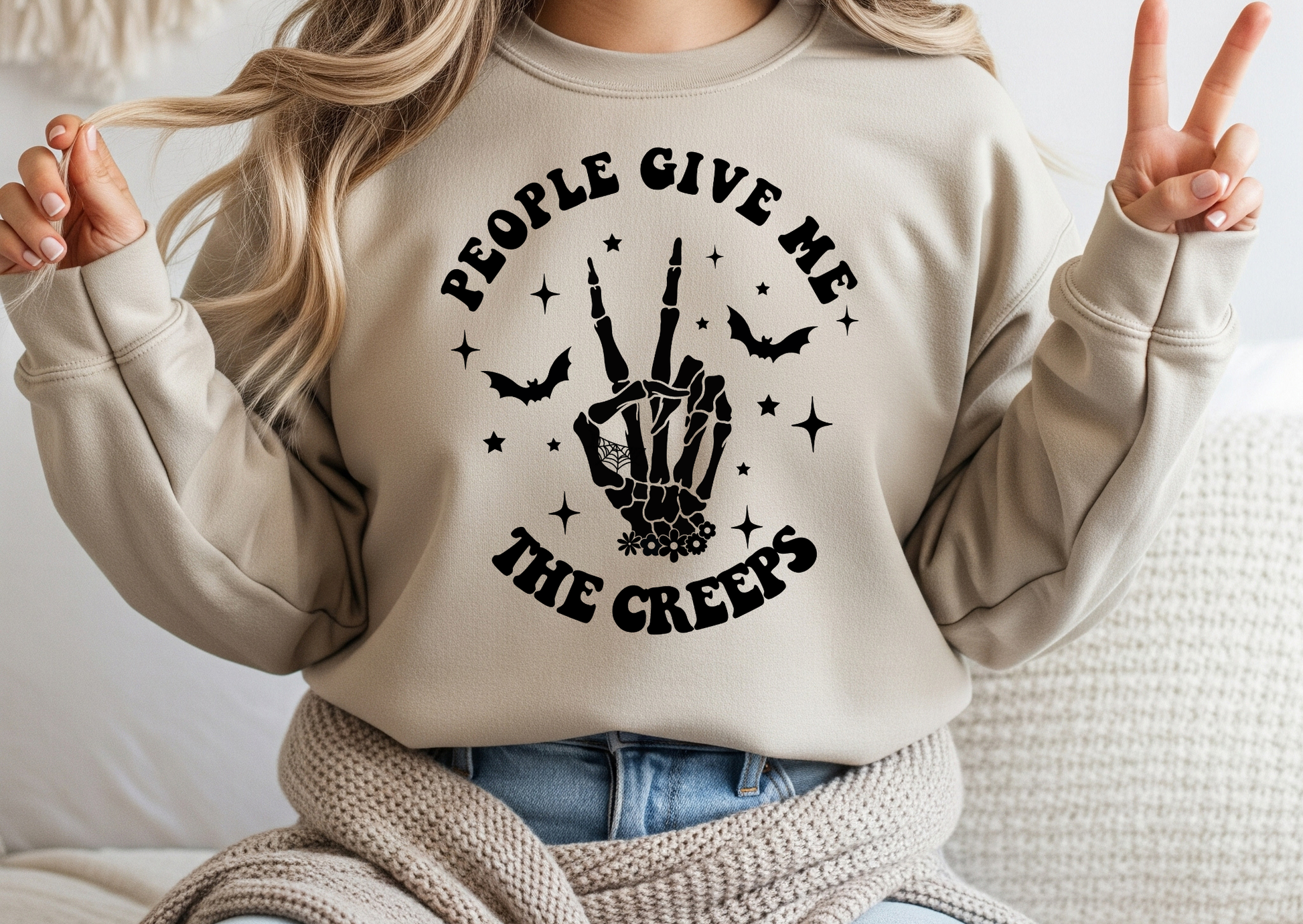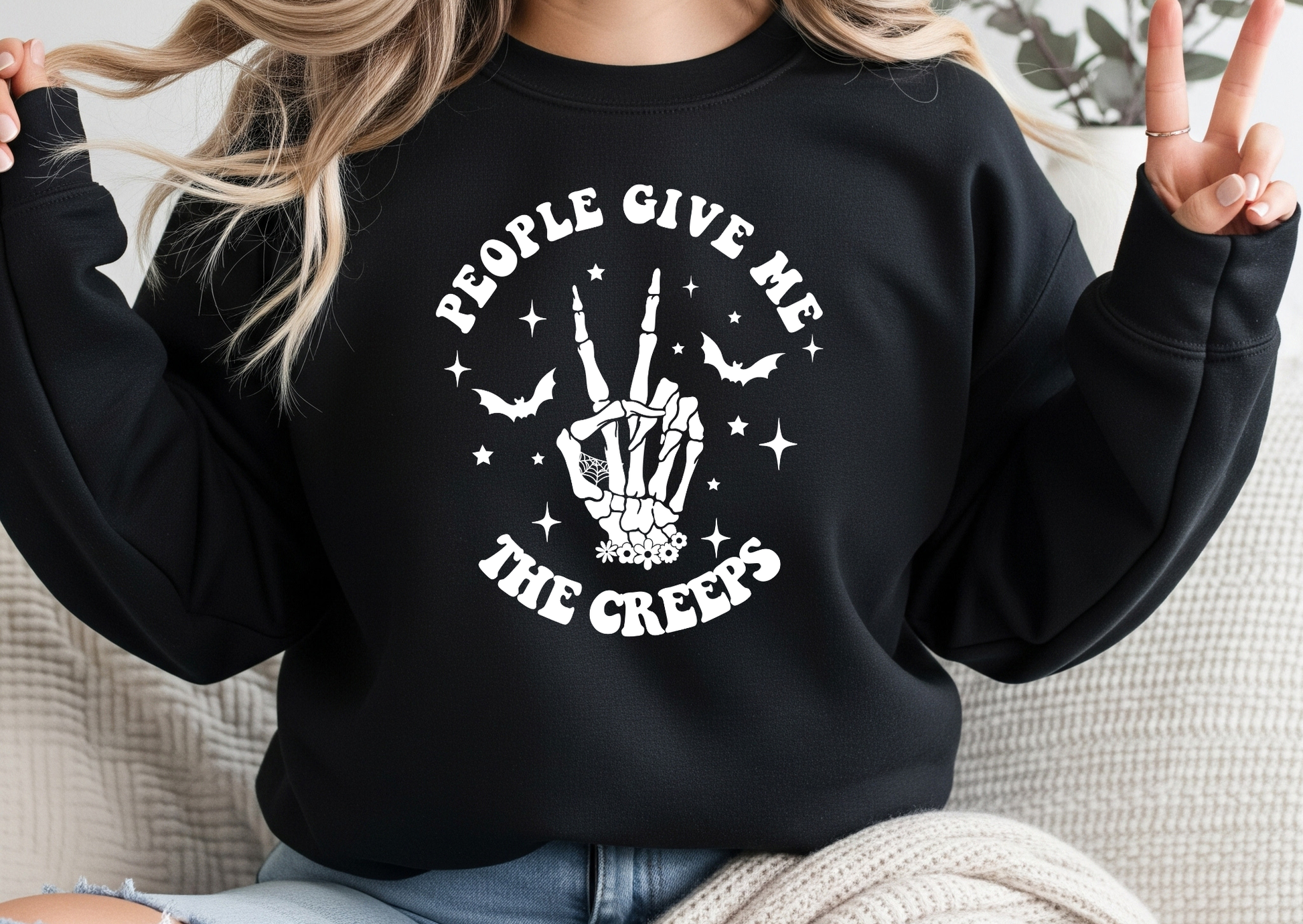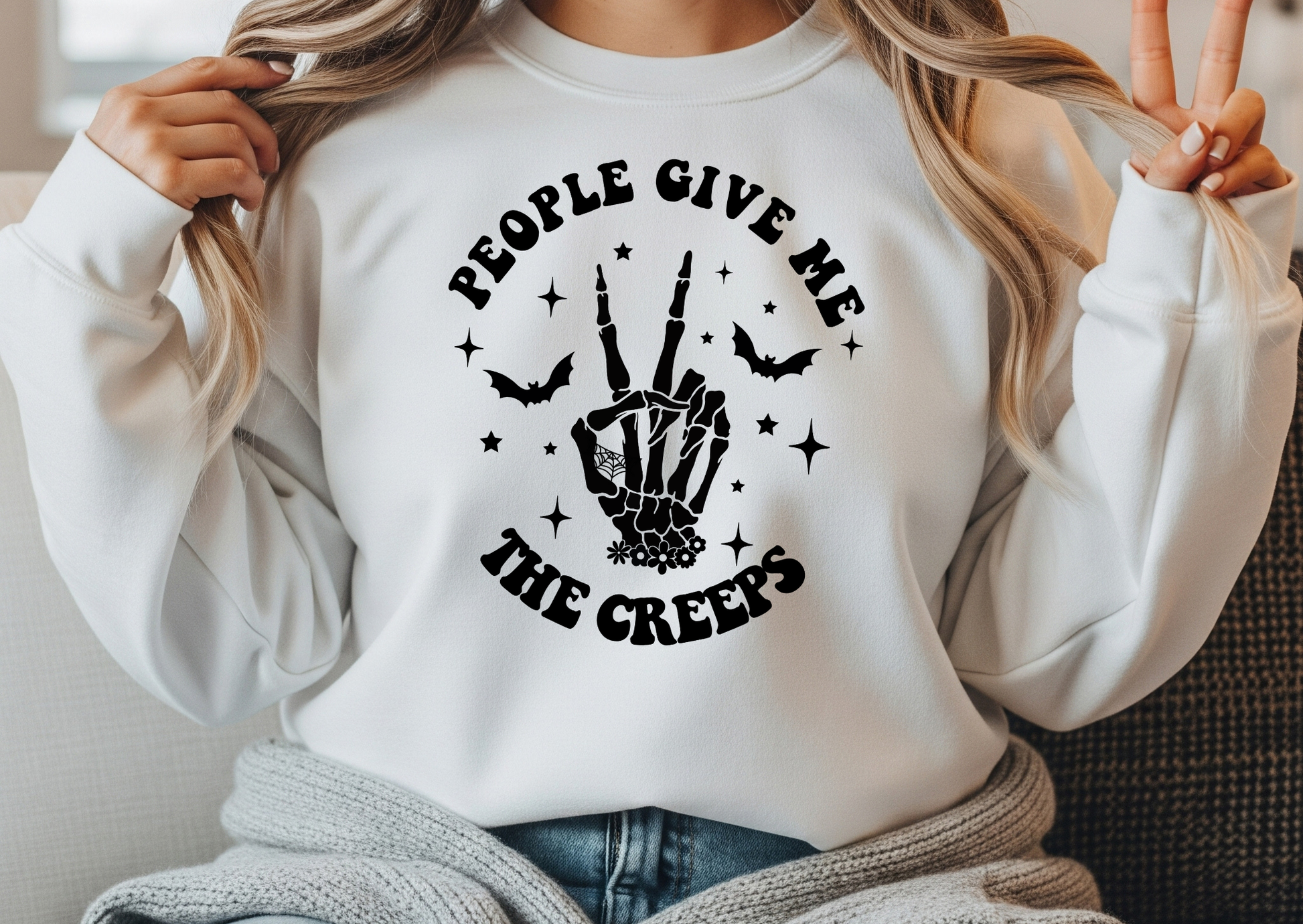 Add a little spooky sass to your wardrobe with our “People Give Me the Creeps” design 👻. Whether you’re channeling Halloween vibes or just keeping it real year-round, this piece is perfect for those who love a touch of dark humor and cozy style.